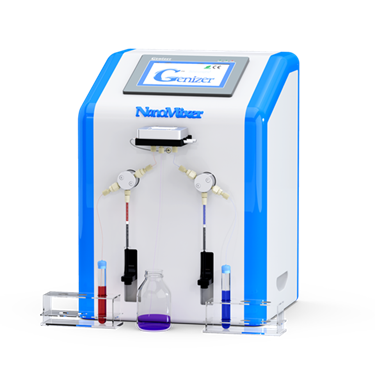 Genizer's NanoMixer is a microfluidic mixer designed for laboratory use. This nanomixer prepares mRNA, DNA, siRNA delivery systems, and various other nanoparticles. It is an electronic device that functions without the need for compressed air or hydraulic oil. The NanoMixer facilitates sterile mixing while maintaining minimal dead volume.
