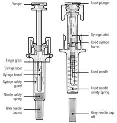 Each pack contains one ready to use single-use pre-filled syringe and one reminder