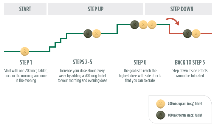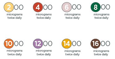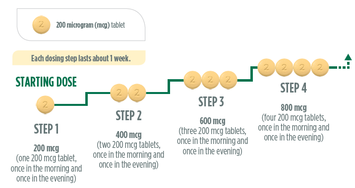 At the start of treatment, you will take the lowest dose. This is one 200 micrograms