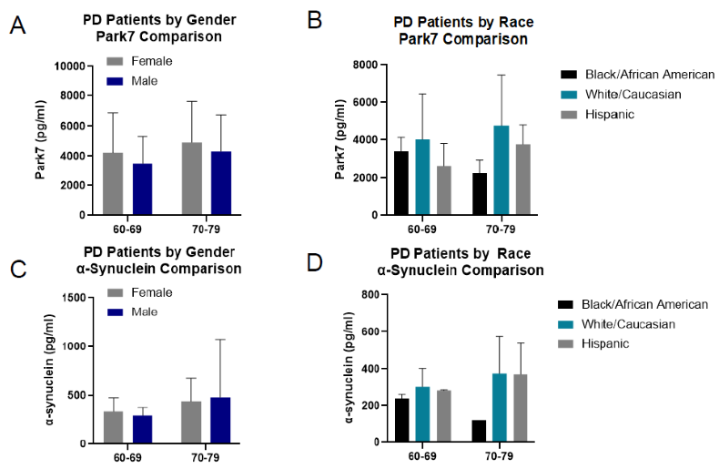 Figure 3. Comparison of Park7 and a-Synuclein Levels by Gender and Race in Parkinson's Patients. Image Credit: BioIVT