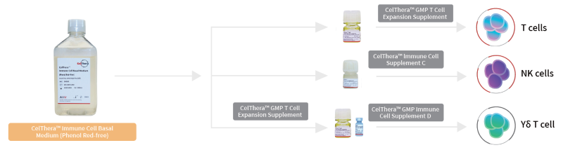 Two supplements, NK cells and yδT cells, were designed to be used with a universal basal medium. The purity of NK cells and yδT cells increased by 1,000 and 17,600 times, respectively, to 97 % and 93 %.