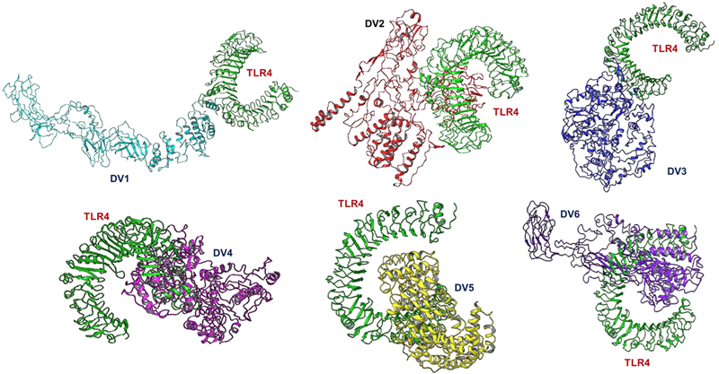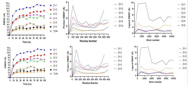 RMSD and RMSF analysis confirmed DV5 as the most stable construct, with strong structural integrity and receptor binding.