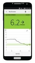 When a FreeStyle Libre sensor is scanned by a smartphone running LibreLink apps, the Result Screen is displayed and shows the current glucose reading, up to eight hours of glucose history and a trend arrow indicating where glucose is heading. Notes can be added to each scan event, if desired.