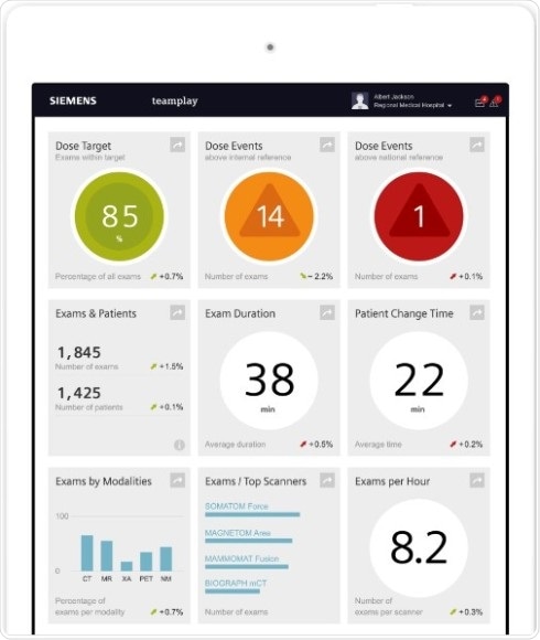 In the tool, members have flexible access to the information available. Teamplay offers an entirely free basic service allowing users to see the reports from Siemens scanners, there is then an available upgrade to allow access to data from all manufacturers’ systems. Packages currently available include usage, dose and protocols, a number of new packages are currently being developed with many future applications both for radiology and outside radiology.