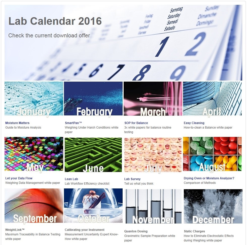 December’s final installment of METTLER TOLEDO’s 2016 e-calendar will help further optimize lab processes for greater accuracy, so keep watching for additional information.