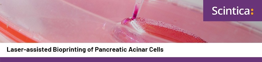This study focuses on development of an in-vitro 3D pancreatic acinar cell model to investigate the impact of a pancreatic cancerous steatosis niche on the initiation of the disease. The model is based on the 3D co-culture of primary acini extracted from 2 genetically engineered mouse models: one in which the Kras mutation is expressed, and the other where the Vps34 complex has been inactivated, leading to alterations in the cellular lipid behavior. Laser-assisted bioprinting is utilized to mimic the micro-organization of the acini in the exocrine pancreas. This technology enables the projection of highly concentrated microdroplets of acini into a hydrogel, which models the extracellular matrix.